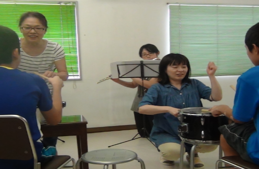 ・みんなで呼吸をあわせてひとつの曲を完成させる合奏活動