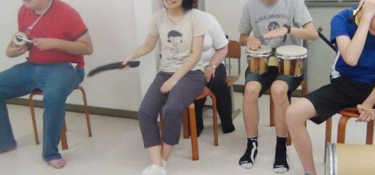 視線を合わせる、指さしをする、指さし先を見るなど言葉を獲得する準備段階を大切に育てます。音楽の開始・終了を感じて活動すること、活動しながらスタッフや友だちに気付くことが、すでに音楽療法が生み出すコミュニケーションです。
