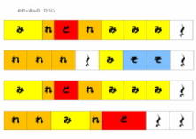 交替演奏です。リズムパターンが視覚的に 把握できます。 |