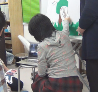 前回のビデオ映像をパソコンでチェックしながら演出に工夫をこらしているところです。
